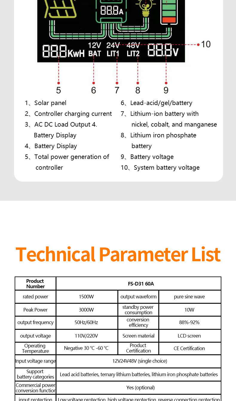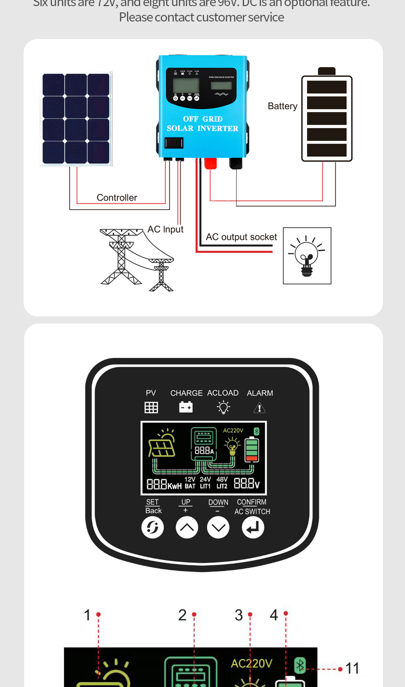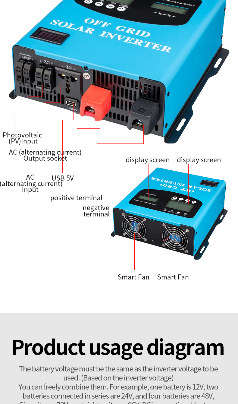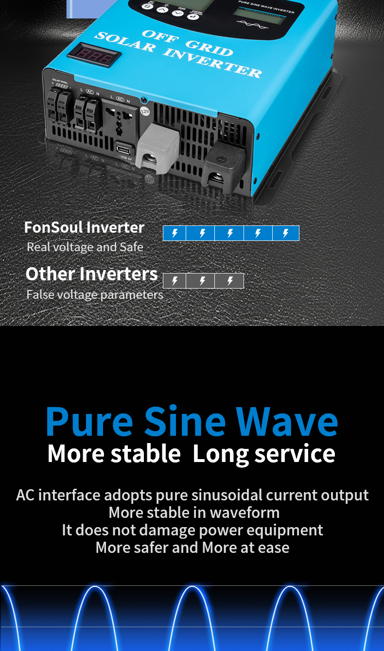 Double voltage Pure Sine Wave Inverter & SolarController & Supports home photovoltaic solar systems And is compatible with parallel operation.