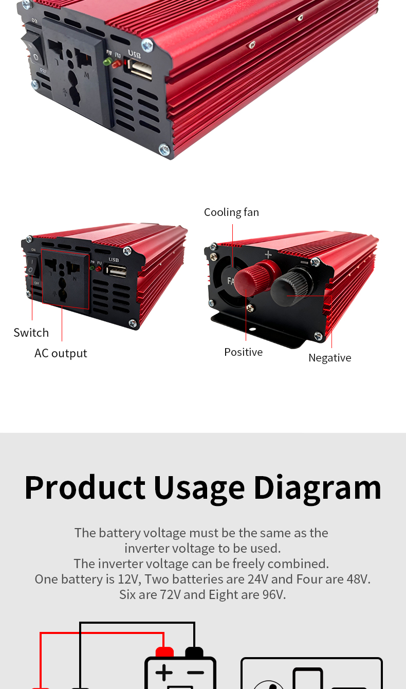 Modified sine wave inverter & Support for household, vehicle-mounted and outdoor use