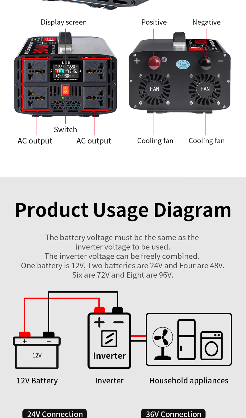 Pure sine wave inverter & Support for household, vehicle-mounted and outdoor use