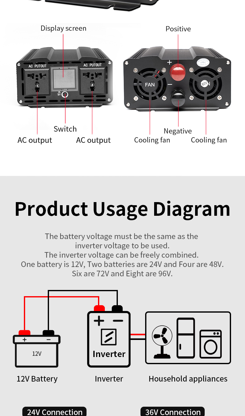 Pure sine wave inverter & Support for household, vehicle-mounted and outdoor use