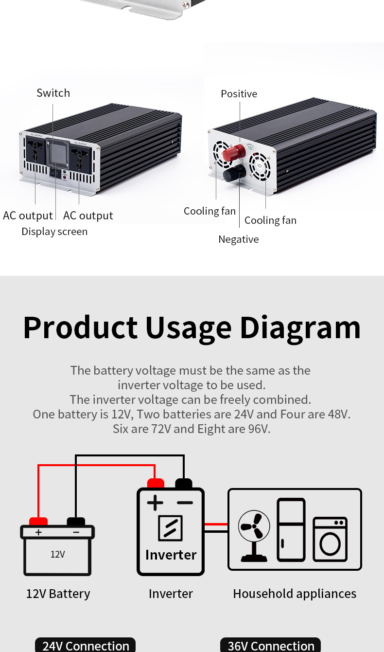 Pure sine wave inverter & Support for household, vehicle-mounted and outdoor use