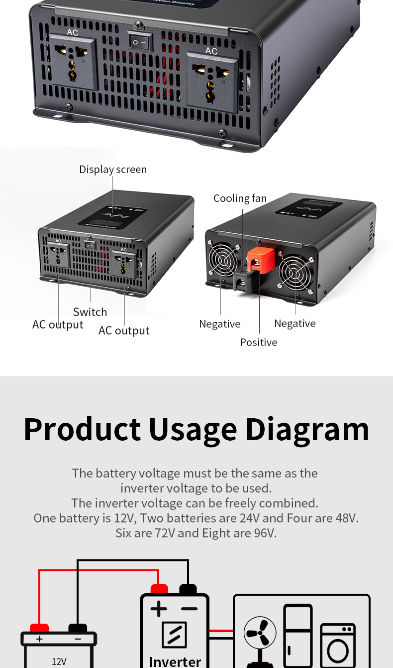 Pure sine wave inverter & Support for household, vehicle-mounted and outdoor use