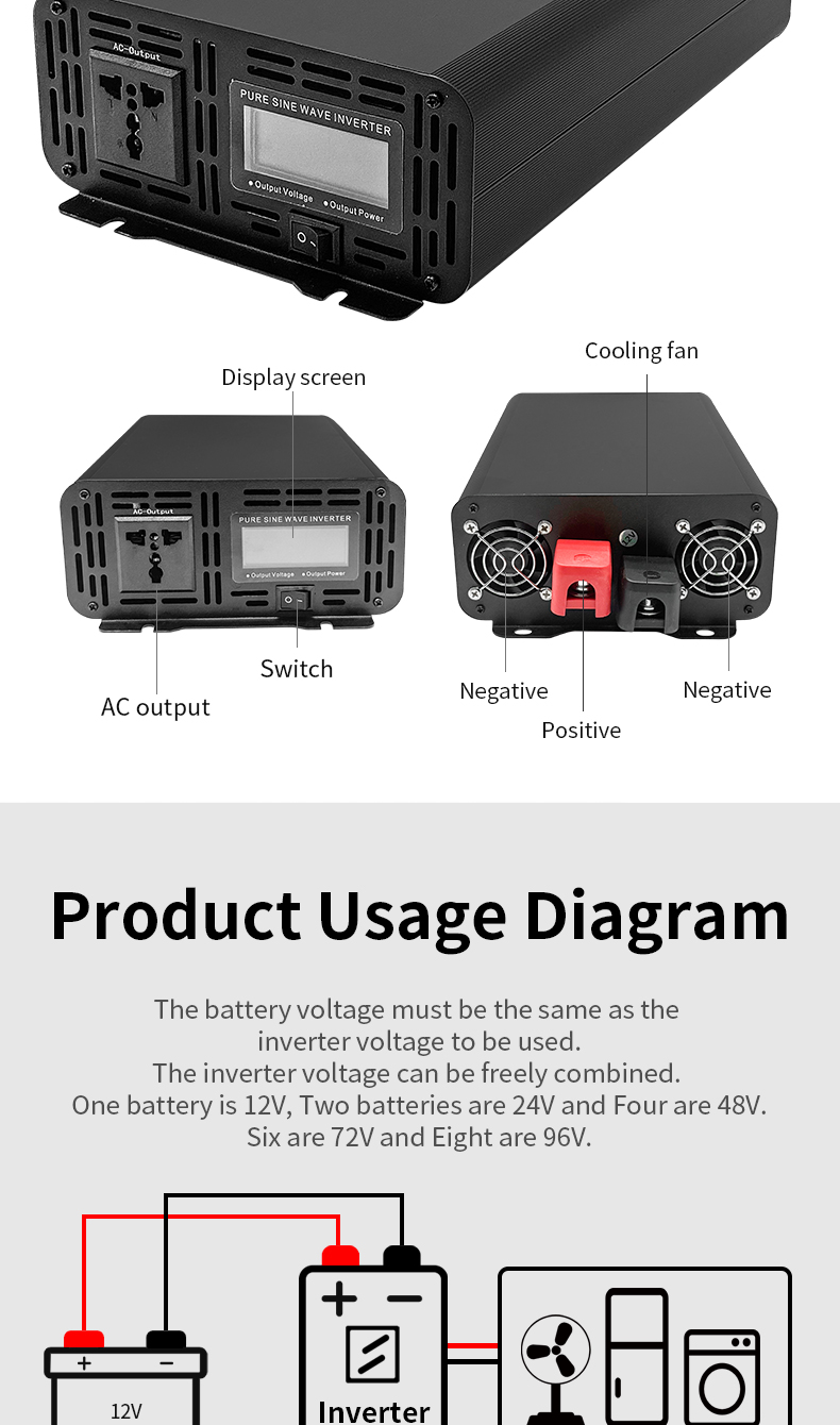 Pure sine wave inverter & Support for household, vehicle-mounted and outdoor use
